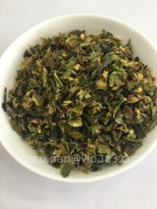 Dehydrated green jalapeño is made from fresh green jalapeño peppers that are carefully washed, sliced or diced, and dried to remove moisture while preserving their natural color, flavor, and moderate heat. It delivers a fresh chili aroma with a slightly grassy and tangy profile, making it a versatile ingredient in food processing and culinary applications.