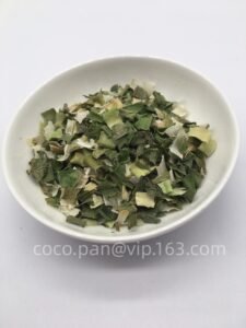 Dried leek flakes are made from fresh, high-quality leeks that are carefully cleaned, sliced, and dehydrated to preserve their natural flavor, aroma, and nutrients. They have a mild onion-like taste with a slightly sweet note, making them a versatile ingredient in many food applications. The dehydration process ensures a long shelf life while maintaining consistent quality, color, and flavor.